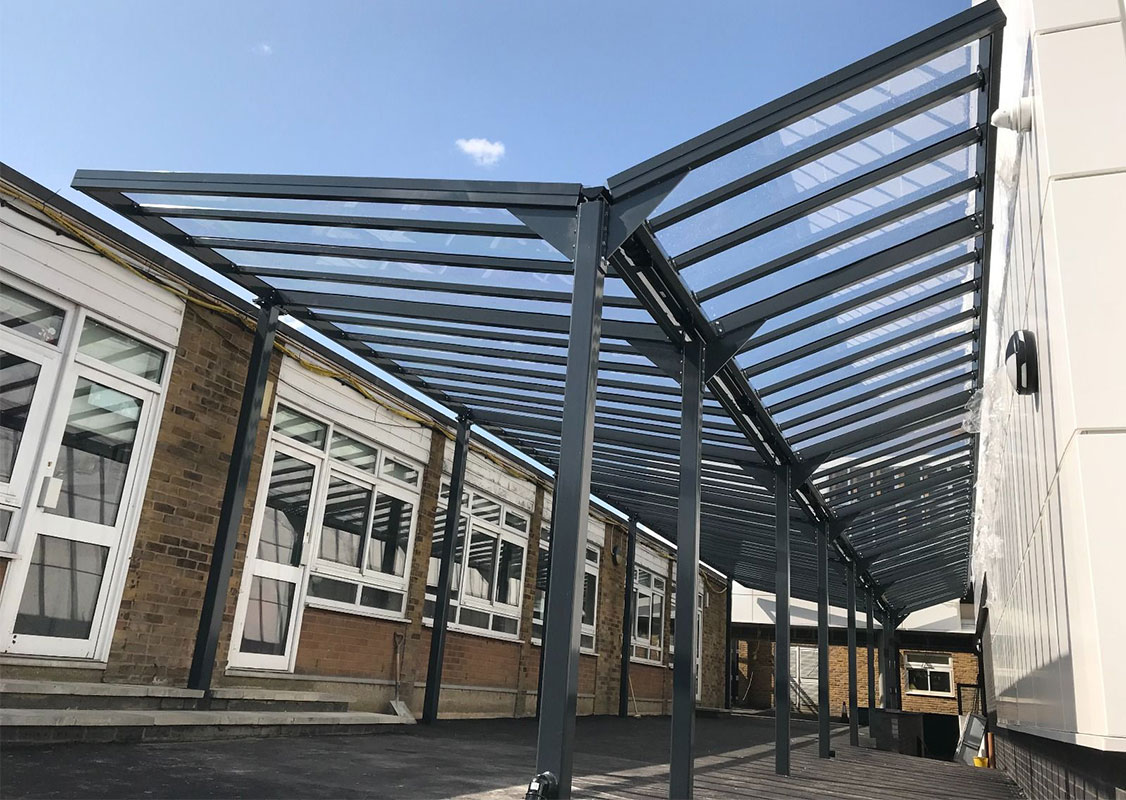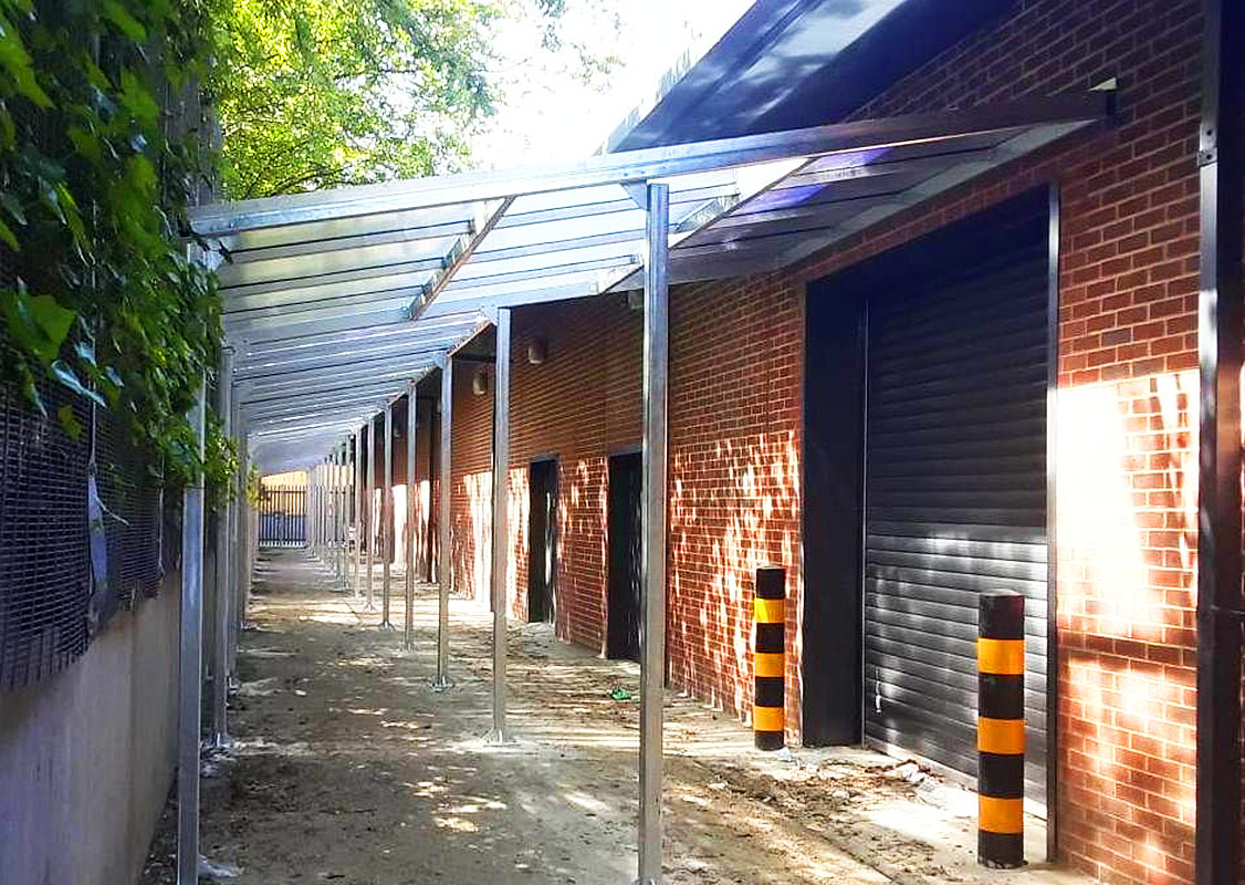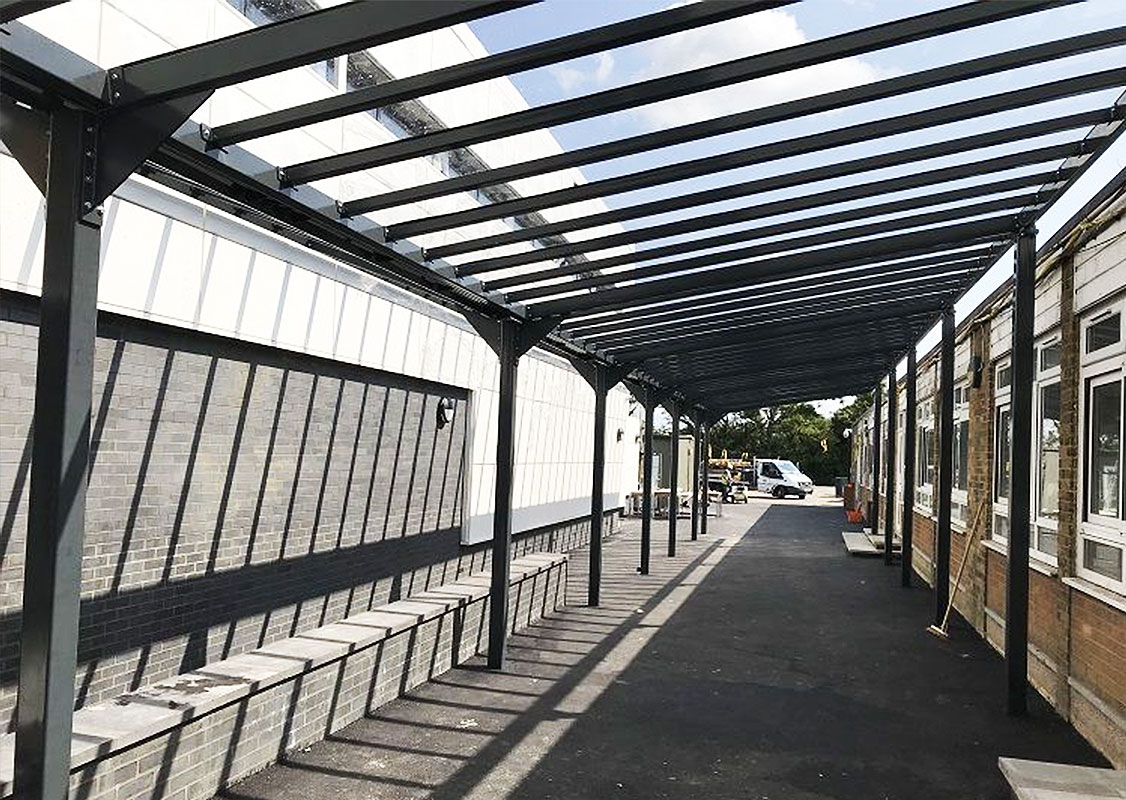 Our canopies, also known as walkways or mid-building covered shelters, provide practical weather protection while enhancing the flow between buildings and outdoor areas. Designed to offer shelter from rain and sun, they are a functional and visually cohesive addition to commercial, educational and residential environments.