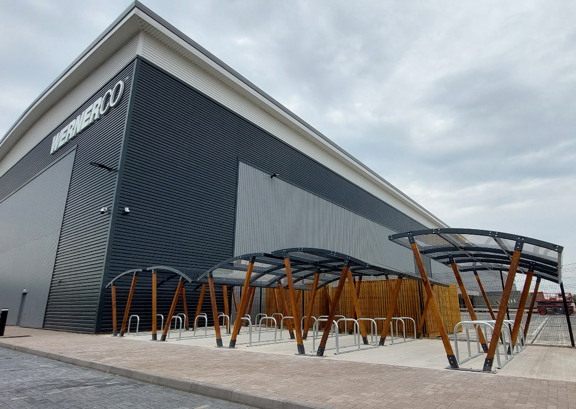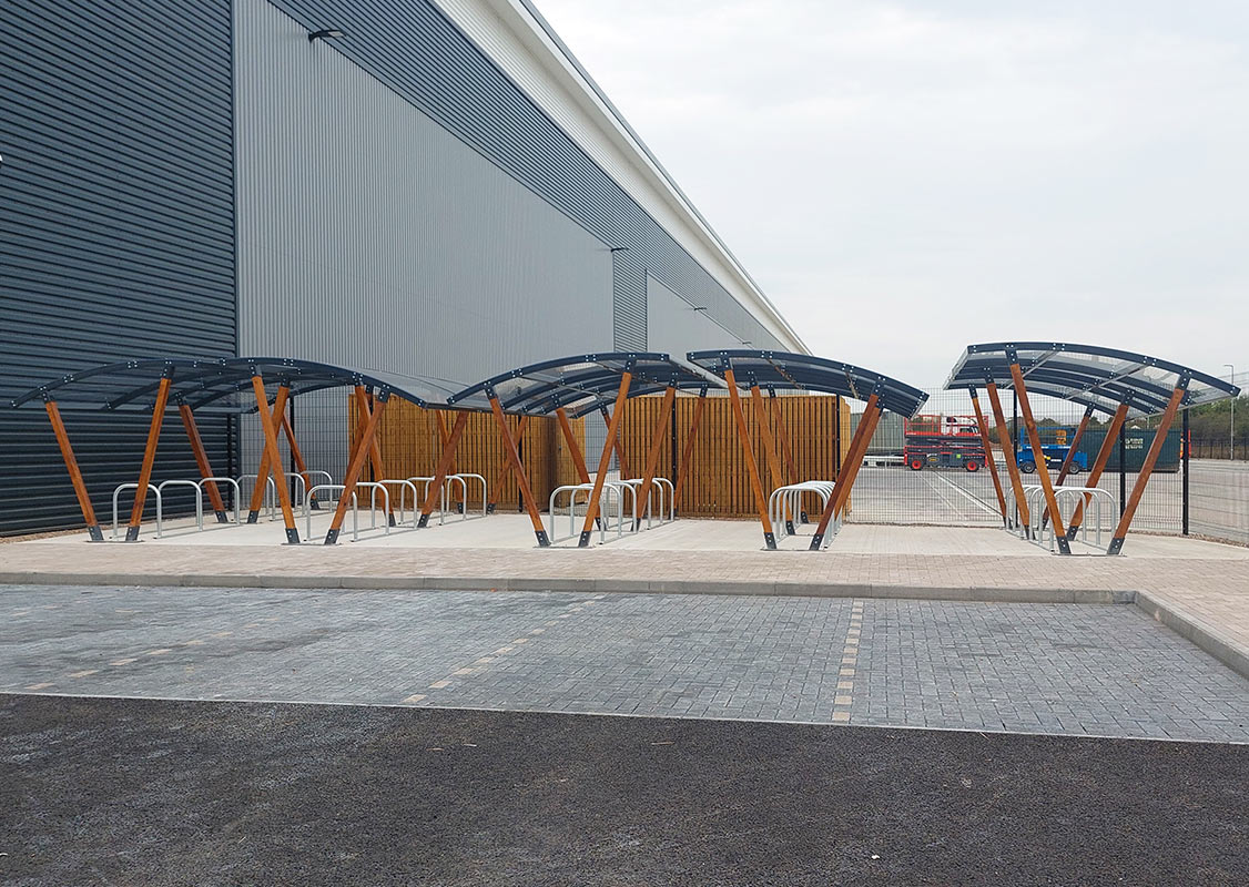 Custom powder coated office cycle shelter...