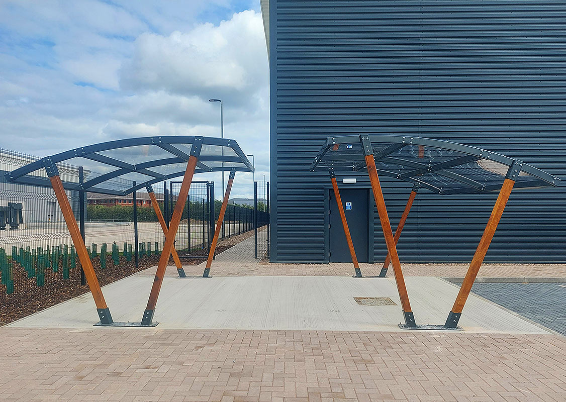 bespoke designed and manufactured cycle shelter with incorporated cycle stand...