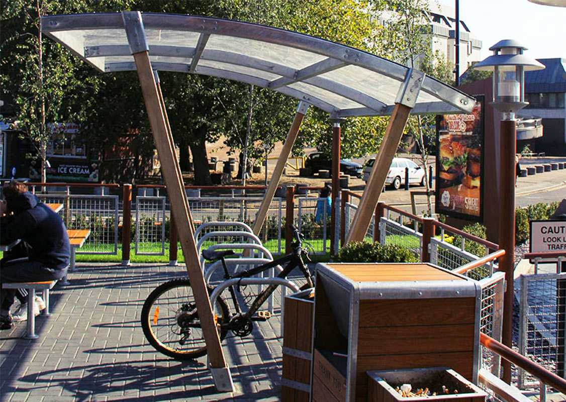 Timber ARC bike shelters with powder coated framework...