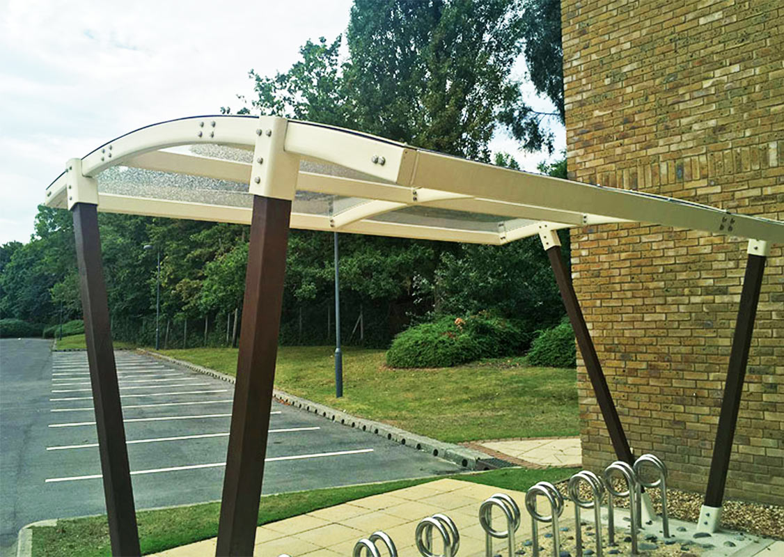 Custom powder coated office cycle shelter