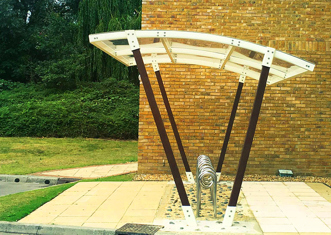 Timber ARC bike shelters with powder coated framework...